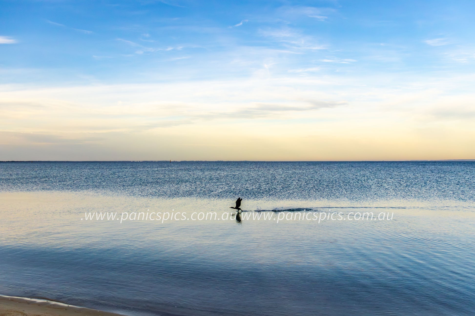 A cormorant struggled on take-off, after getting his stomach full of fish